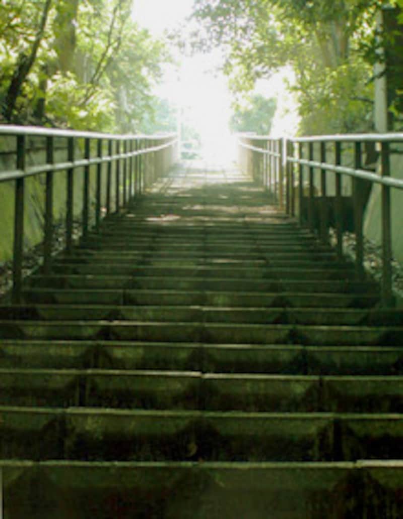 右のタイムスリップしそうな写真。その先には「野毛大塚古墳」があります。