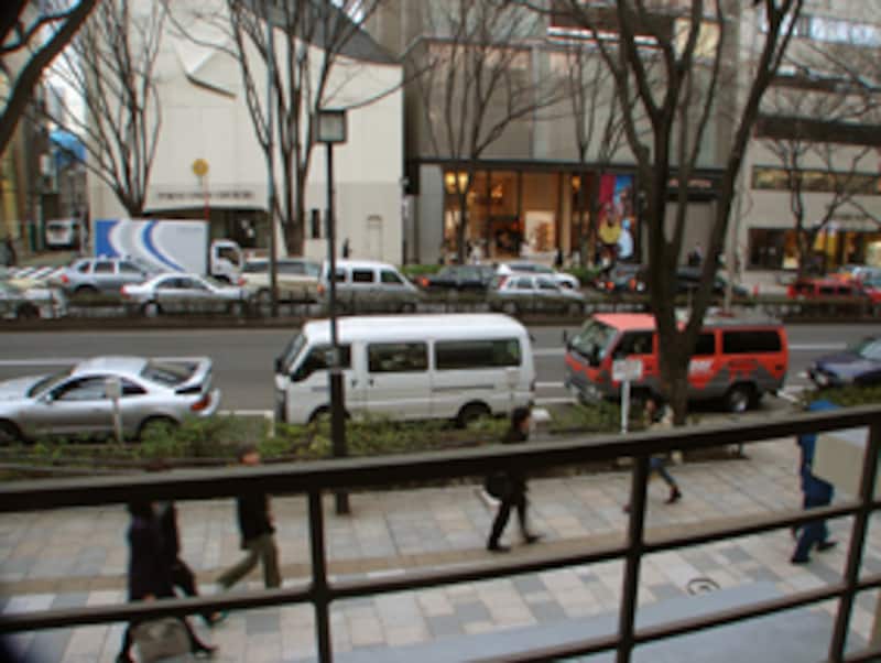 | 現在の表参道。原宿方面をのぞむ。手前が青山アパートの外壁を再生した「同潤館」。新しい風景が生まれようとしている |