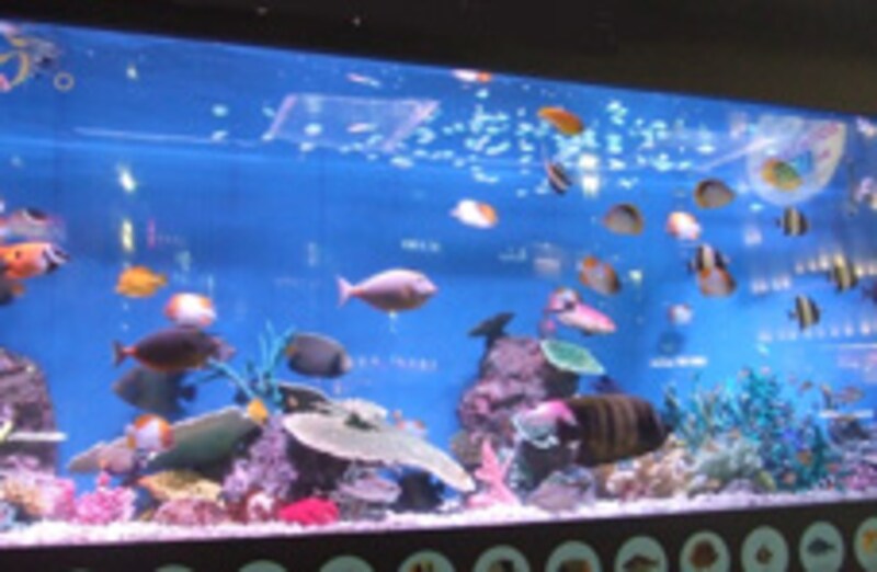 銀座・数寄屋橋交差点のランドマーク<ソニースクエア>。この入口に幅およそ5.4mの巨大水槽が設置されています。泳ぐ魚たちはおよそ40種類1500匹。待ちあわせはお魚の前で、が夏の合い言葉になりそうですね。