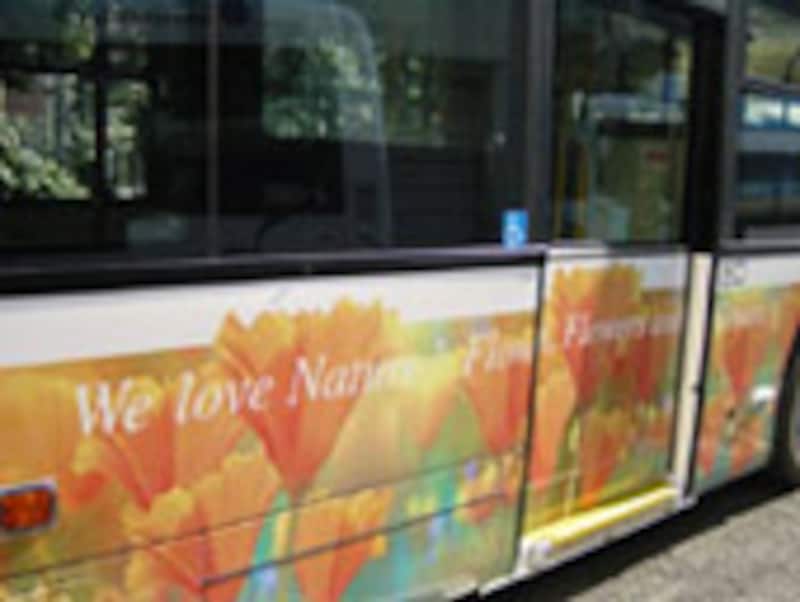 「変化に参加」(2両)……木と鳥が描かれていて、「環境のために、バスがちょっとできること」と大きく訴えています。数週間、数ヶ月後には葉っぱが増える予定。観察してみてください。