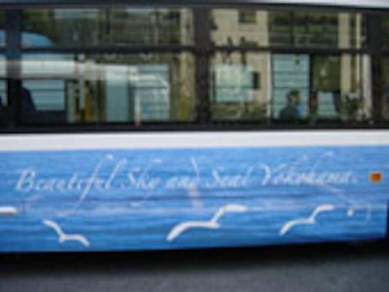 さて、今回カタチになったデザインは全部で5種類。2月18日から、順次走り始める予定です。どのデザインもこれまでにない、ユニークなイメージになっています。バスのベース色である「白」を活かすというのが根底に流れており、環境保全に訴え、なおかつ楽しい気分になるように配慮してデザインしてあります。どのバスにも、今回のキャッチフレーズである「環境のために、バスがちょっとできること」が書かれています。
