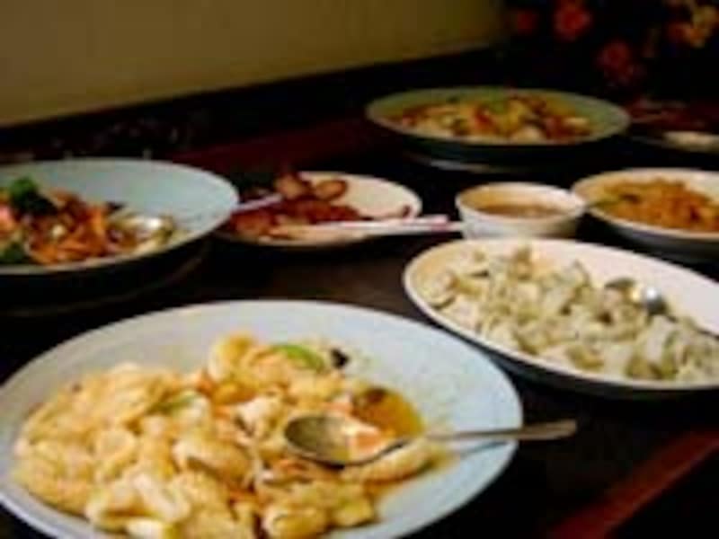 | ずらっと並んだブッフェメニュー。イカの炒め物は、イカがやわらかくて特に絶品でした! | |