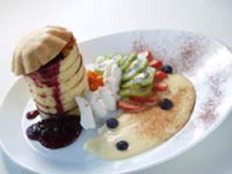 | 左:ディナーメニュー「オーロラディナー」(3,000円)北欧風料理が味わえます 右:ムーミンハウス パンケーキ(1,050円)ムーミンハウスの形をしたパンケーキ。ニョロニョロがキュート! | |