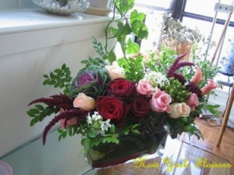 フラワーアレンジメントといっても英国スタイル、ドイツスタイル、最近人気のオランダスタイル、そして日本では一番人気になっているパリスタイルなどもあります。が、私は一番基礎となる英国式を学びました。今ではちょっとNYマンハッタンの一般的なお部屋には大げさっていうか、ゴージャスすぎて、飾りにくいスタイルなんですけど、もちろんホテルなどでは映えるスタイルです、基礎を学んでると、今やっているNYスタイルのアレンジメントには役立ってますし、学んでてよかったって思っています」
