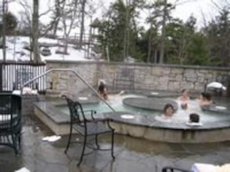 ホテル内にあるスパへ行く。ホテルは増築を重ねているので目的地にたどり着くまでは迷路のようだ。スパにて受付の人からロッカーを使い方などを説明してもらい、まずは、白いガウンに着替える。露天風呂気分で入れる屋外にあるジャグジー。3月半ばといっても寒いNY、森の中にあるからか、まだここは雪景色だった。まるで冬の温泉につかるニホンザルになったみたい。客層は、もちろんスパなだけに女性同士のグループが目立つ。若いカップルや老人のカップル。思いがけずベイビーや子供をつれた家族連れをたくさん見かけた。税金やサービス料を入れると一人一泊300ドルは下らないという料金なのに、なぜ子供まで連れて来れるの? と思っていた。後から、子供は無料や割引優待の時があるからだと知った。