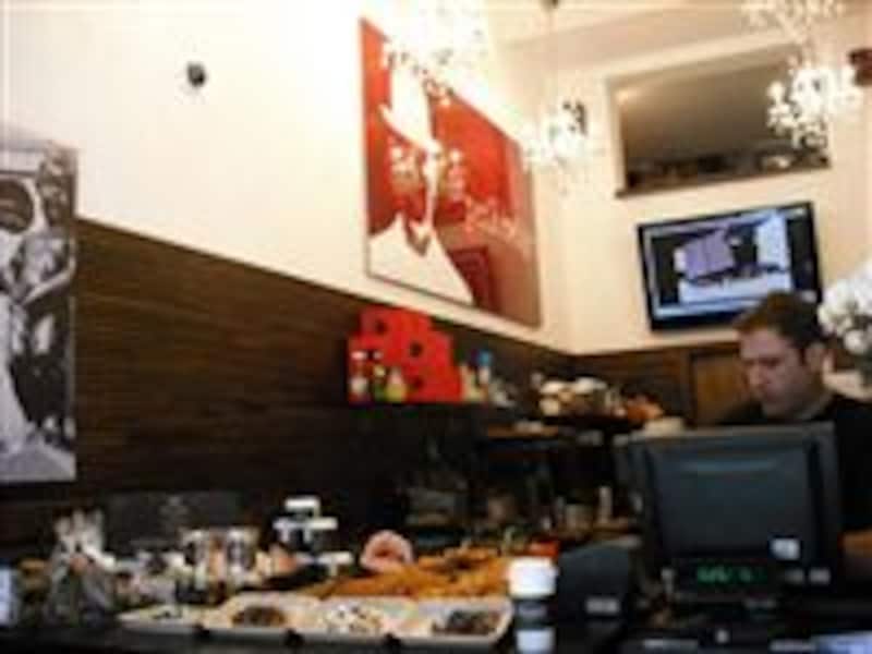 やんちゃな若者風の彼らですが、インテリアのデザインも全て自分たちで手がけたそうです。ポップな空間にシャンデリアがマッチしています。そして最大の特徴は、併設したDJブース。「深夜までオープンしてるから、楽しまないとね」。イマドキのスイーツ・ショップとして完璧ですね。