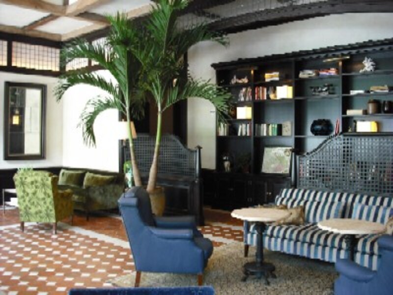 | 鮮やかなブルーと緑のコントラストが美しいロビー。 |