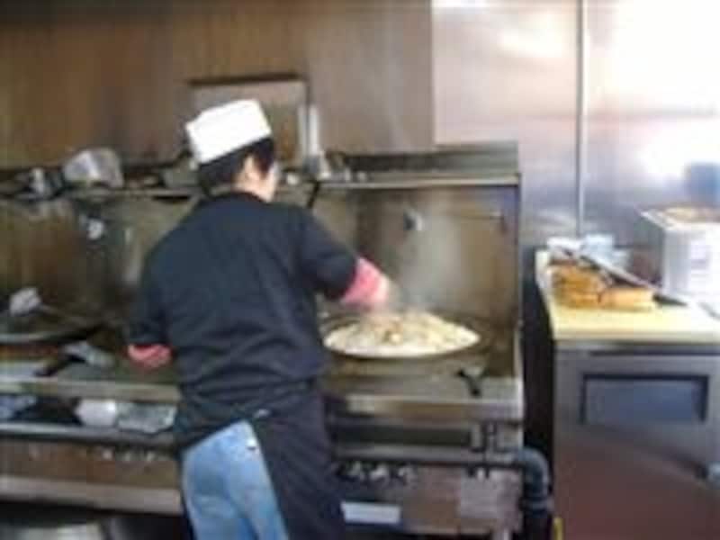 | 右手のカウンターで注文。目の前で餃子が焼かれます。 |