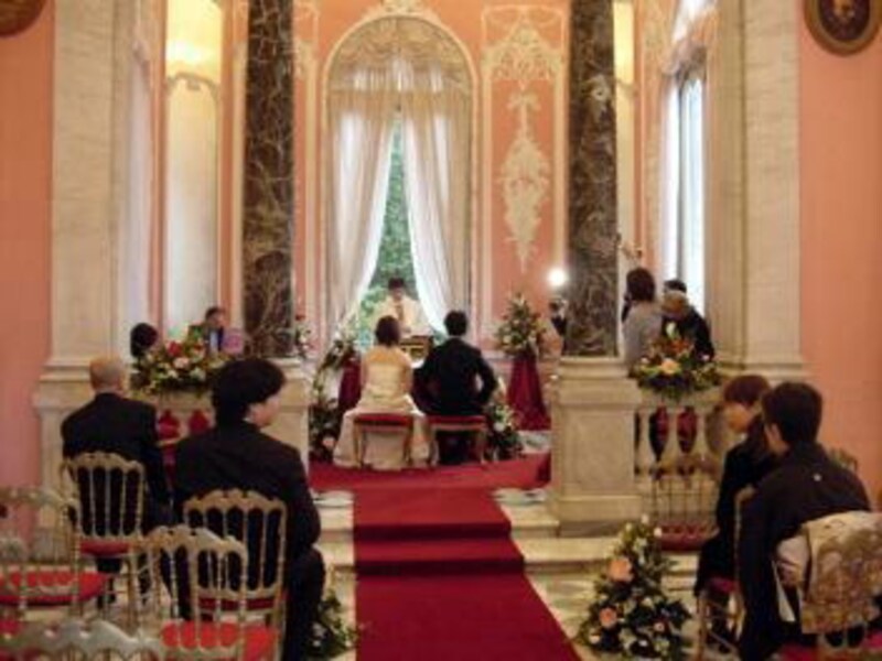 ローマでは、「ブランカッチョ宮殿」で日本人の結婚式をオーガナイズしています。 この宮殿はかの「ローマの休日」のロケ地としても知られた本物の貴族のお屋敷。 1880年創建当時から使われているアンティークのシャンデリアや家具。豪華絢爛な宮殿に一歩入れば「ううむ・・」と、 ヨーロッパ貴族のゴージャスな暮らしっぷりにうならずにはいられません。 手入れが施された庭園、噴水の水音にもなんだかとってもお品のよろしい感じが漂います。