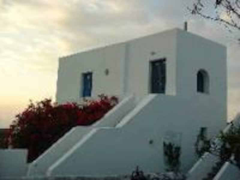 白い石造りのかわいらしいヴィッラ。上水道が整った最近まで、井戸水が生活用水だったとかで、井戸も残っています。 テラスもあり、キッチンには一通りの食器と道具が用意され、快適な滞在ができそう。 つまり、日本でいうところの貸し別荘、ってとこですね。