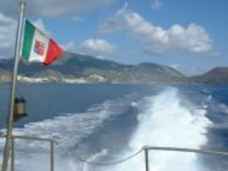 サリーナ島、リパリ島などを経由。くっきりと晴れ渡った空に真っ青の海。エオリア諸島の島々を眺めながら、甲板で持ち込んだビールを