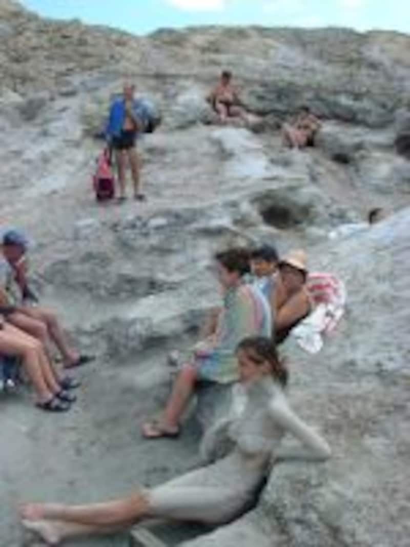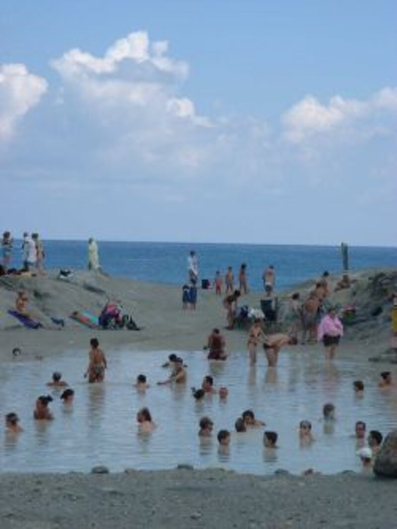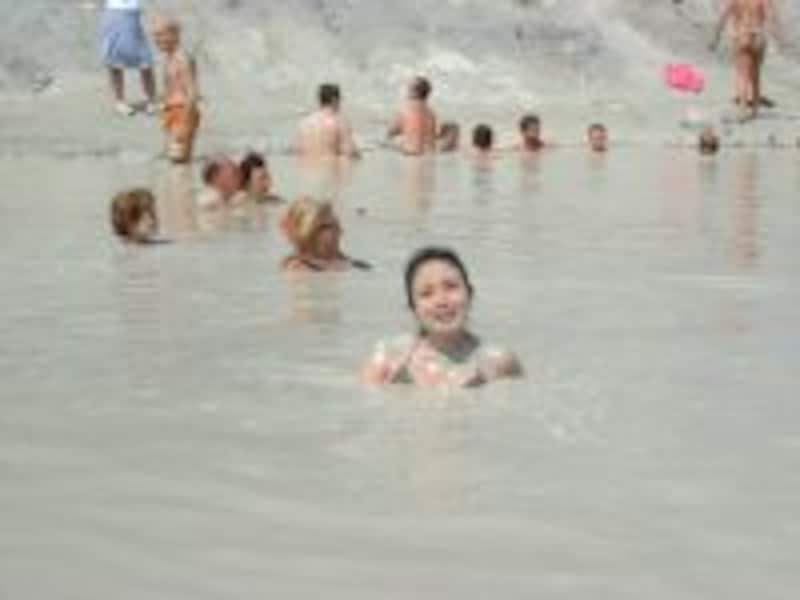 ぬる~~~~~い温泉。足元はどろ~~~~~ん。一緒のイタリア人たちは「スキーフォ!スキーフォ!」(うえー気持っちわるーい)と