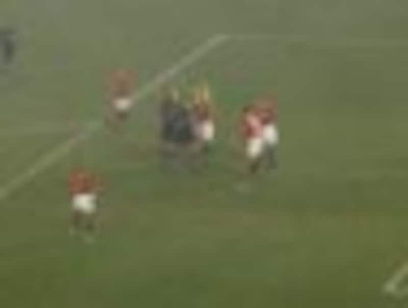 出動待機する機動隊に、ドドーンという爆発音、もくもくと白煙が あがった先からドドドドーと逃げる人の群れ。と通常よりもさらに物々しい雰囲気に 包まれたローマスタジアムオリンピコは、20時30分の試合開始にもかかわらず、 私たちが到着した19時にはすでに黒山の人だかりができていました。お祭り気分いっぱいのスタジアムは、 煙幕やらタバコの煙(?)やら、観客の熱気やらでうっすら霧がかかったようにかすんでいます。 無事に席を確保し(遅めに到着すると予約してるはずの席も埋まっちゃう可能性が大)、 開演の瞬間を待っていると、隣にあった一人分の空席に、おじいさんが駆け込んできました。 真っ赤な目で「いやー参った参った、催涙ガスだよー。ああ、目が痛い。はっはっは」と、 うれしそう(?)に泣いています。話してみると、数十年通い詰めている年季の入ったロマニスタ(ローマファン)だそうで、 孫の活躍を見守るように、催涙ガスでチクチクする目を細めながら観戦されていました。 きっと奥さんに文句言われながら毎週末サッカー観戦にき続けてるんだろうなーと、 勝手にしみじみ。