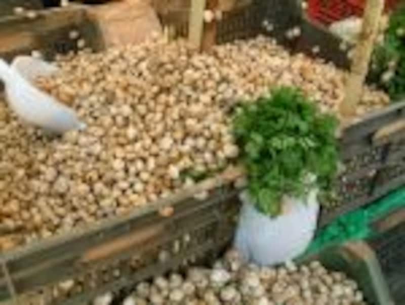種類様々なオリーブが山になっていたり、トマトが強烈な赤さを放っているのは、
