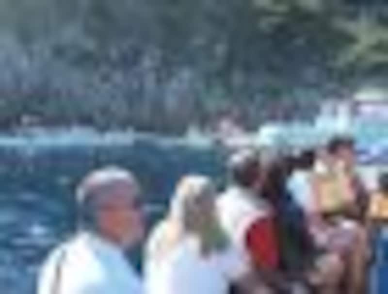 島の港から、さらに小船に乗り換えて行く、とても有名な「場所」に到着。の場所を目指して、真夏なら数時間も海の上で待つこともあります。