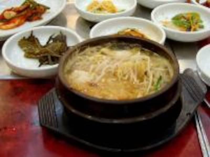 クッパッも地域によってそれぞれ具や食べ方にバリエーションがあります。例えば、ソウルとその周辺ではスープにスンデを入れて煮込んだスンデクッパッ、釜山地方では豚肉を入れたテジクッパッ、南西部の全羅道のもやしが入ったコンナムルクッパッといったものがあります。値段は5,000ウォン(620円)程。