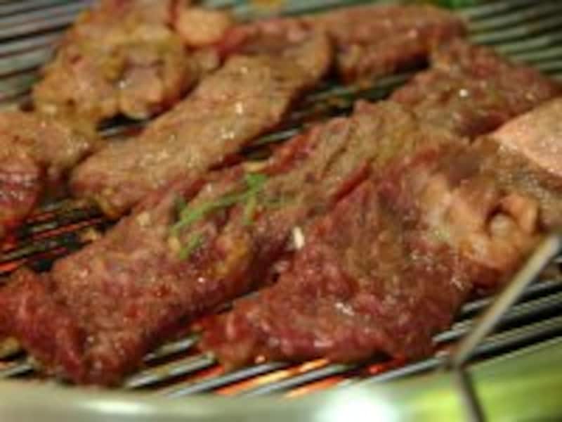 日本の韓国料理店や焼肉レストランでは「焼肉=牛カルビ」という印象が強いようですが、韓国でカルビと言えば牛だけにとどまらず豚(テジカルビ)、さらには鶏肉をコチュジャンで甘辛く和えたタッカルビまで幅広く食べられているんですよ。また、韓国のカルビは必ず「骨付き」というのも大きな特徴。以前にもご紹介したサムギョプサルでもお伝えしましたが、韓国の人々は実は「牛肉より安くて手頃」、「豚肉の方が脂肪分が少なくさっぱりしているので食べやすい」などの理由からテジカルビやサムギョプサルの方が人気なのです。こうしたことから韓国の焼肉店では牛カルビと豚カルビが揃ってメニューにあります。
