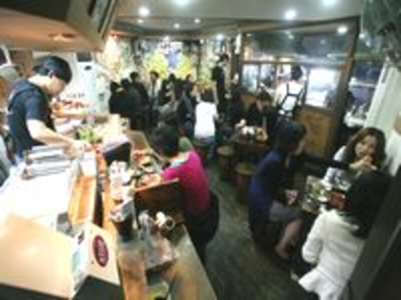 | ヨギ弘益(ホンデ)本店の店内はいつもお客さんでいっぱいです。木造作りの店内はレトロな雰囲気。 |