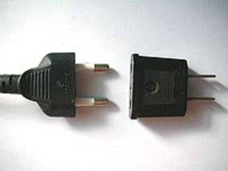 左が韓国の電化製品の差込口です。右が日本の差込口です。韓国のものは、先が丸いタイプなので、日本のコンセントに差し込める形のプラグを購入する必要があります。 |