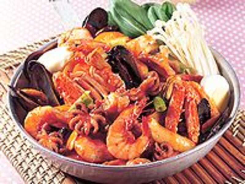 写真メニュー:ヘムルトクチム/해물떡찜(中・23,000W(約1,747円相当)/小・15,000W(1,139円相当)