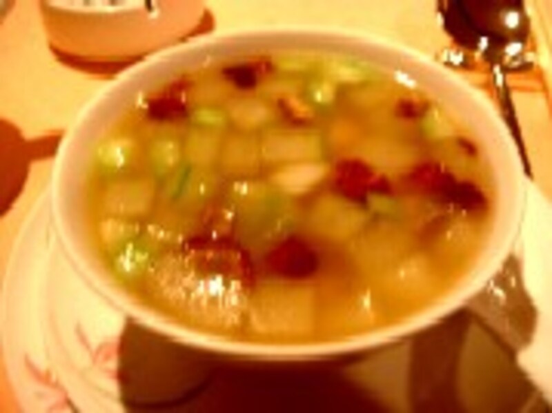 澄んだ中華スープにサイコロ大の冬瓜が煮込まれたスープ。美味しいけれど、個人的にはもう少し冬瓜が煮込んであったほうが良いような気がしました。でも、あっさりとお腹に優しいスープです。