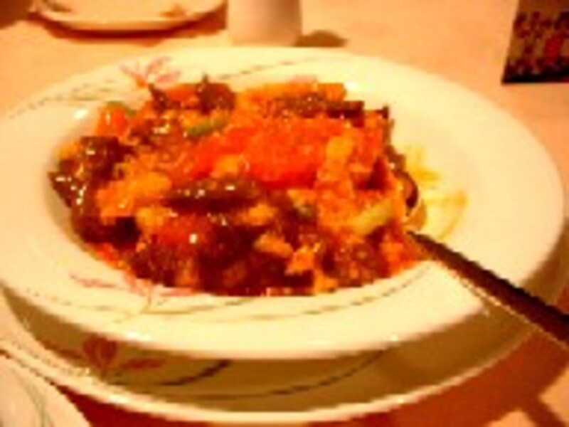 これを中華料理と呼ぶのか、と不思議な気分になる料理です。トマトとスクランブルエッグ風のなかに、あっさりと味付けされて煮込まれたビーフが入った料理。実は客家料理の応用編。なんていうか、中洋折衷な気分が味わえる料理。ビーフは柔らかく仕上げられています。