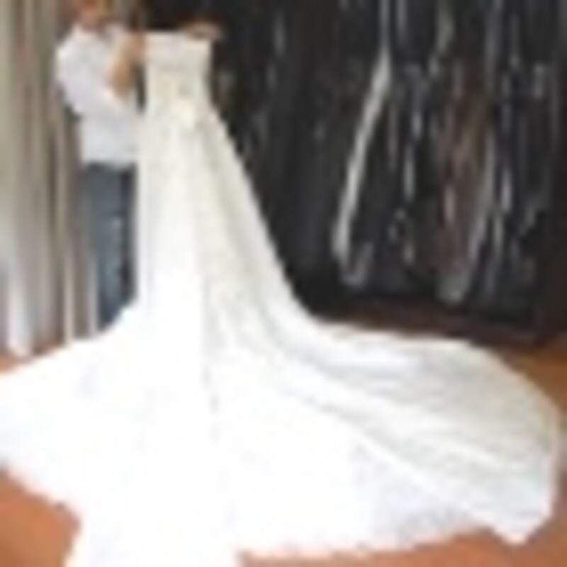 | トレーンを長く引いたエレガントなドレスは永遠の憧れ。 |