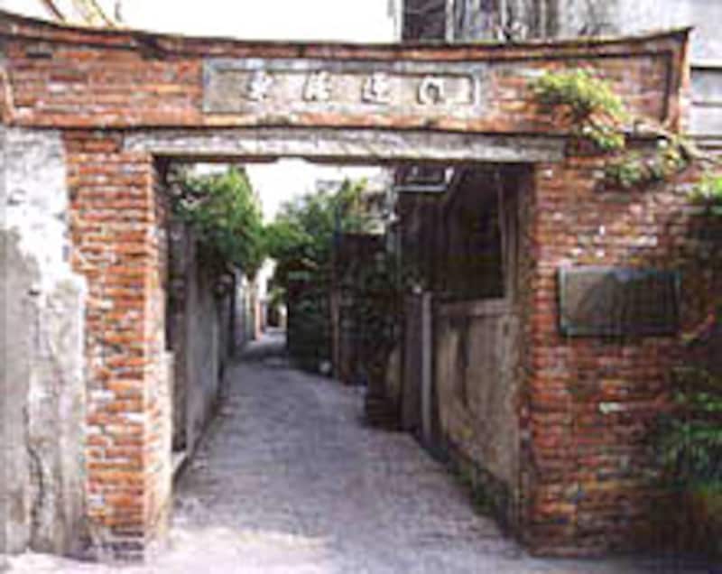 「門迎後車」という文字がついている門。かつてはいくつもあった門だが、現在ではここにあるのみ。門には、邪悪なものを路地の中に入れない、という意味が込められており、また、当時盗賊がはびこっていたこともあって盗賊から身の安全を確保するために路地の入り口に建てたとも言われている。その他、路地の中の連帯を意識させて防犯や地域の結束をはかったとも伝えられている。