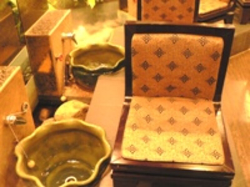| 足湯専門のスペース。スモークが焚かれていて、温泉のような雰囲気。 |
