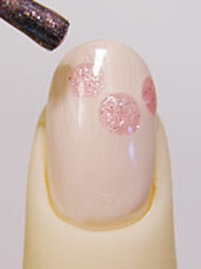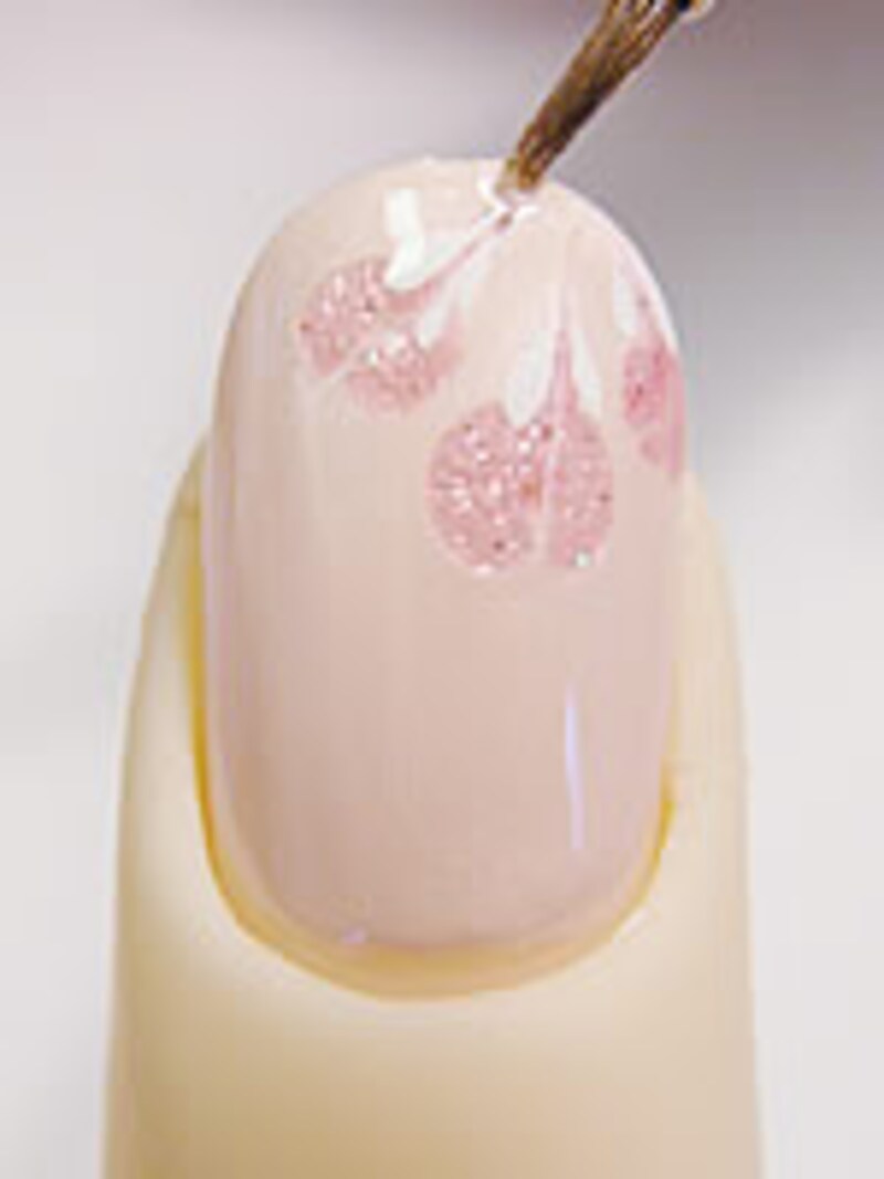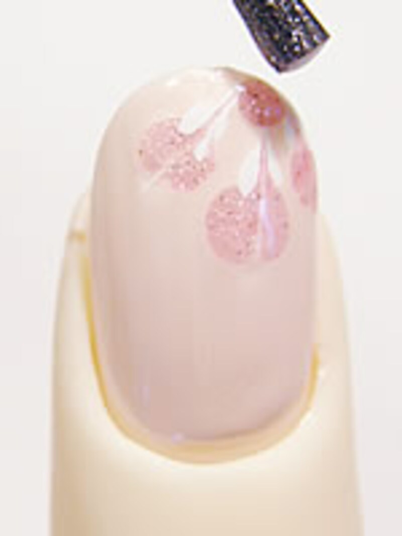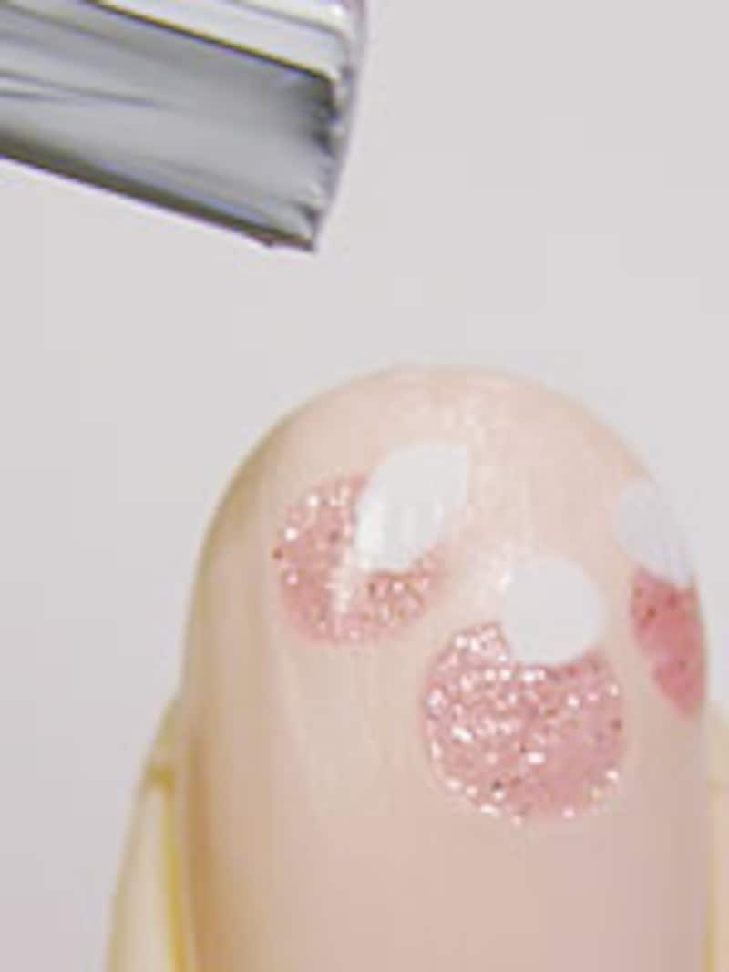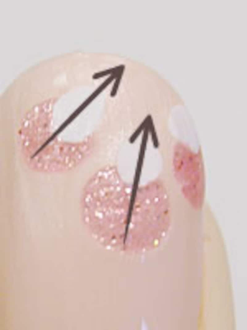 3. 続いてホワイトのポリッシュも同様に乗せます。ピンクの円より小さめ(1/3程度)の大きさにします。