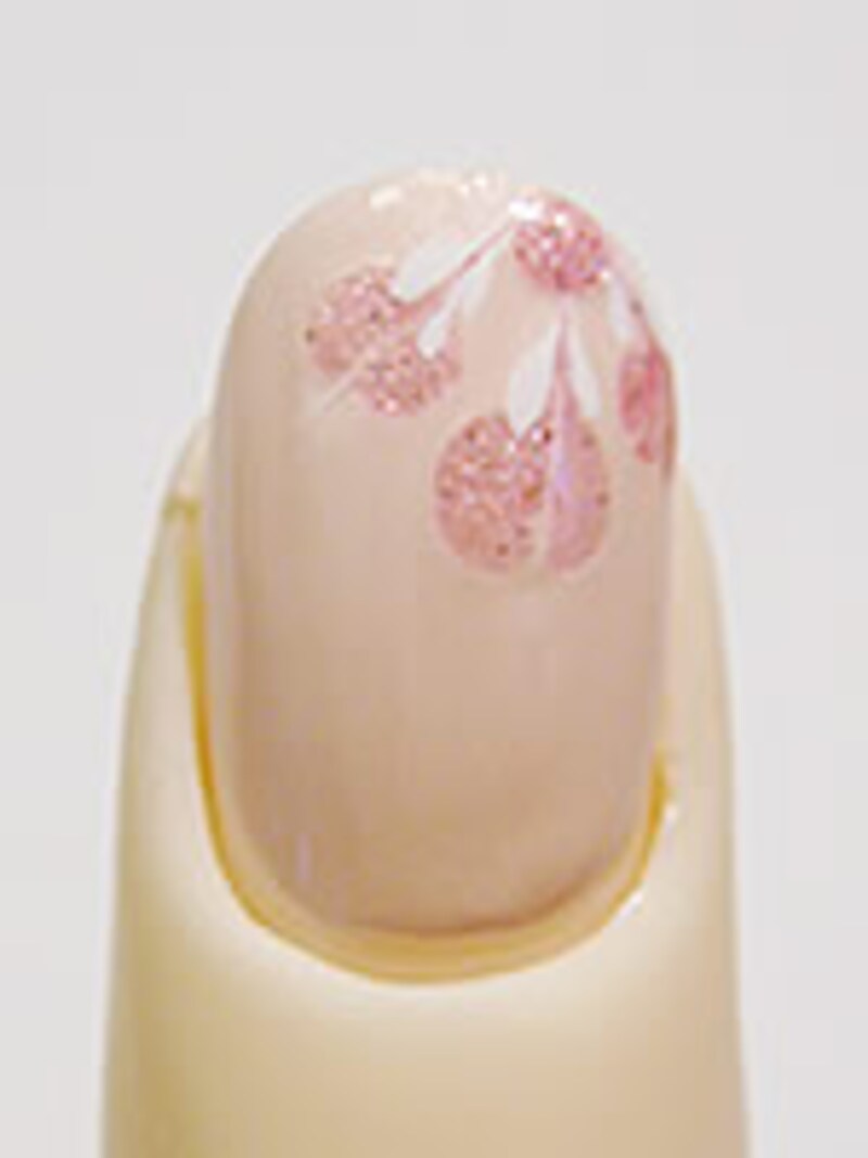 まずは簡単なフラワーモチーフのピーコックから練習しましょう。控えめな配色とピーコックアートの大きさを工夫すると、ぐっと印象が変わります。可憐なお花が爪先に咲くようなピーコックを作ります。