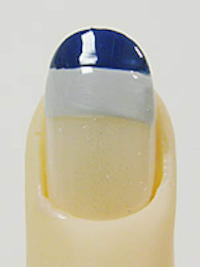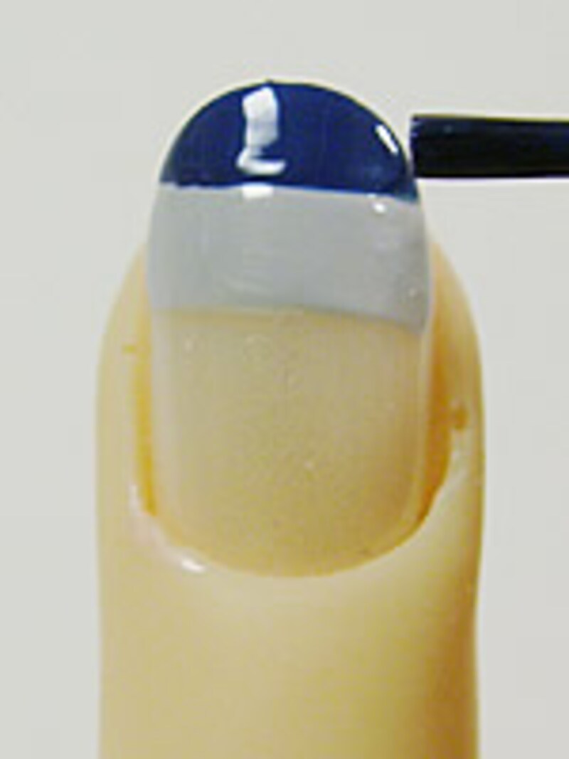 4. 先端のカラーを塗ります。3の手順と同じように2度塗りし、均等な幅に塗れるように気をつけます。デザインによっては、わざと幅を変える場合もあります。