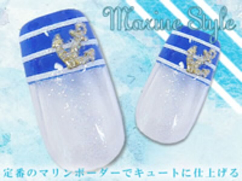 キーワードは「マリン」。女の子の大好きな夏の定番アートです。色や雰囲気を作るのがポイント!