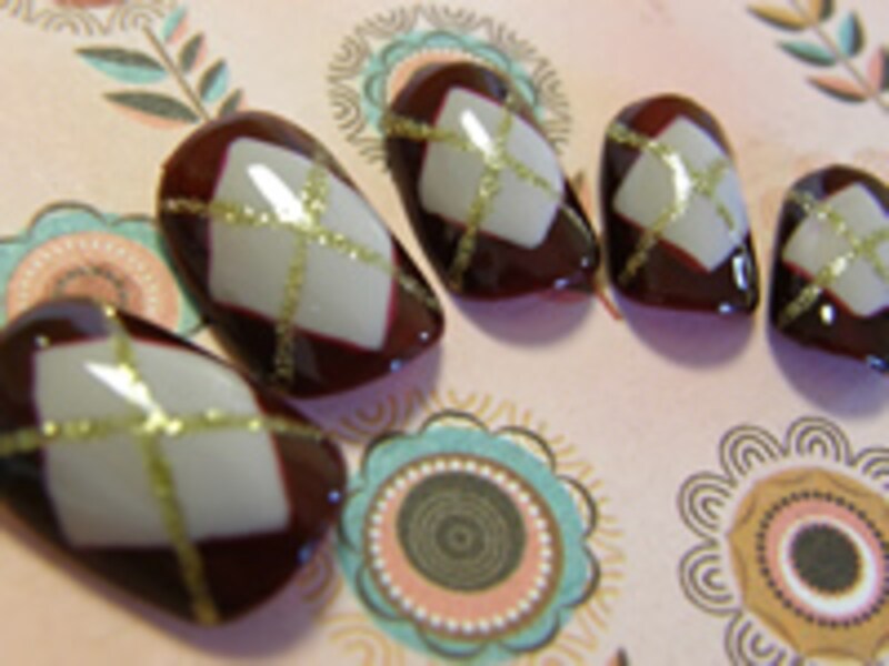 小さい爪だからといって細かい柄を描くのではなく、モチーフになる形を大胆にデザインするのも一つの方法! 大人気のダイヤ柄チェックに挑戦。