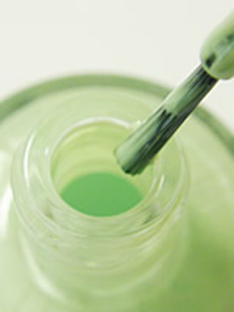 3. ライムグリーン(OPI B44)でスタンプをポンッと押すような感覚でドット柄を作ります。ハケに含むポリッシュの量でドットの大きさが決まります。
