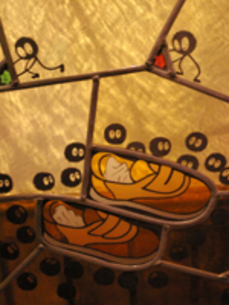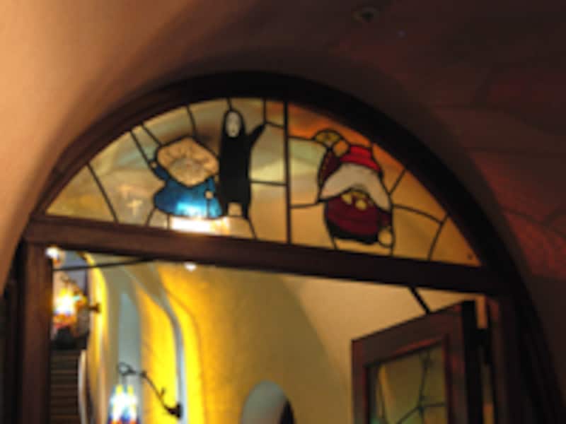 | ステンドグラスに『千と千尋の神隠し』でおなじみの面々が |