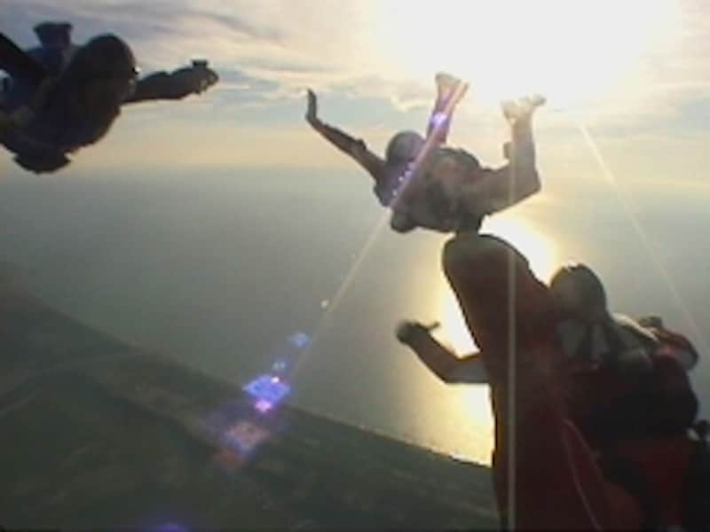 A:スカイダイビングの魅力は、やはり(フリーフォール)空中を「落下」している事。私たちは落ちているというよりも、むしろ「浮いている」という感覚です。