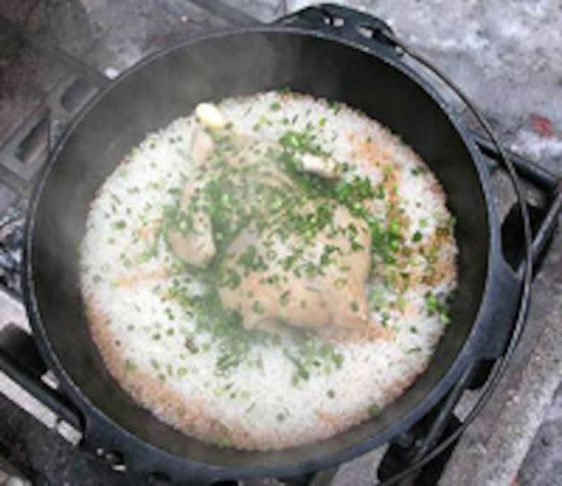 今回は、僕が自然暮らしの中で、最も長い間、最も多く食べてきて、今でも最もおいしいと言い切れるメニュー、「鳥ご飯」を紹介します。シンプルですが、それゆえ飽きない一押しのダッチオーブン料理です。
