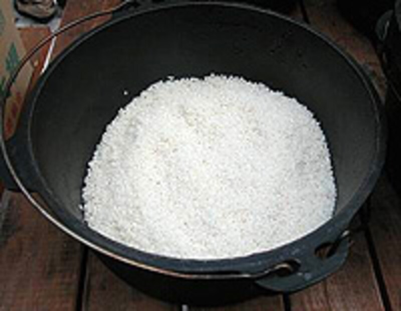 ※アウトドアでは、無洗米を使うのをオススメします。「手軽」、「簡単」、「おいしい」がダッチオーブン料理の魅力です。だし汁は予め別容器に作っておくと簡単便利。カツオだし、昆布だし、お好みで。白米1合に対し、1カップ、量は普通のご飯を炊く分量です。