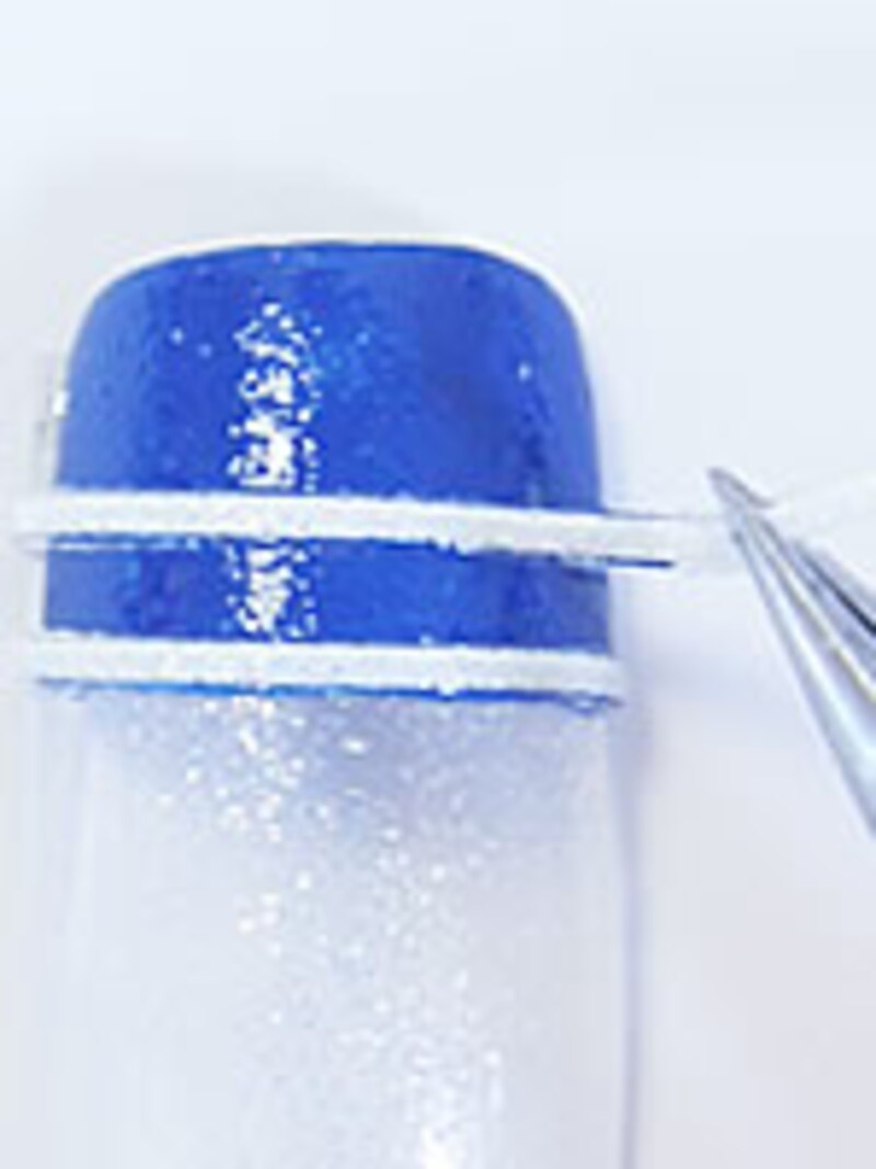 3. 同じ幅になるように心掛けましょう。もし爪が小さい場合は、フレンチを深めに塗ってみましょう。ボーダーは2本でもOKです。