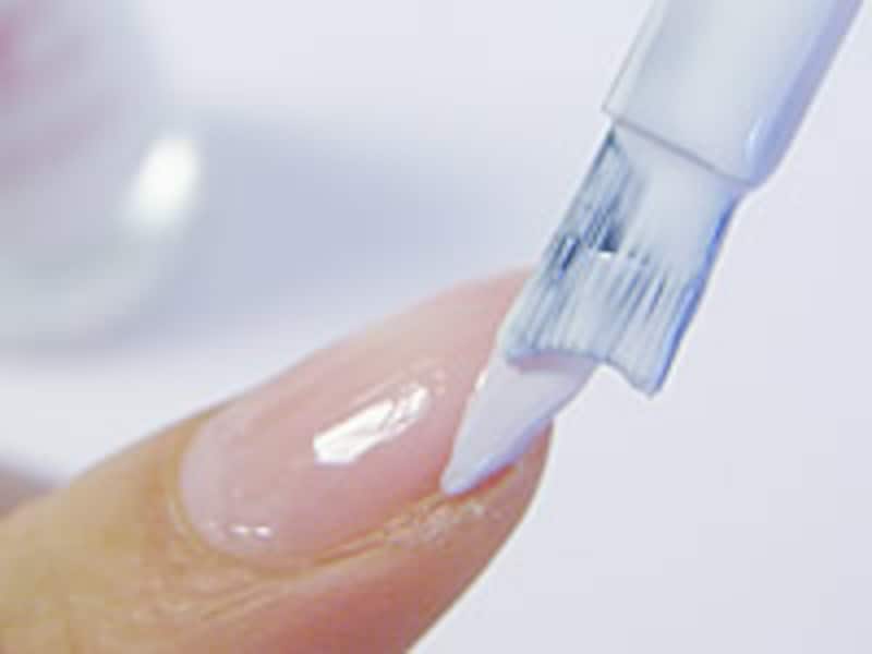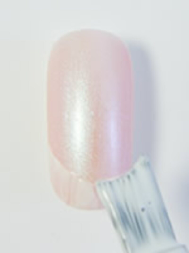 簡単でキレイにフレンチマニキュアが塗れるというカラー。ツヤ感あふれる輝きで持ちがよく、滑らかに爪に塗れるエナメル液。