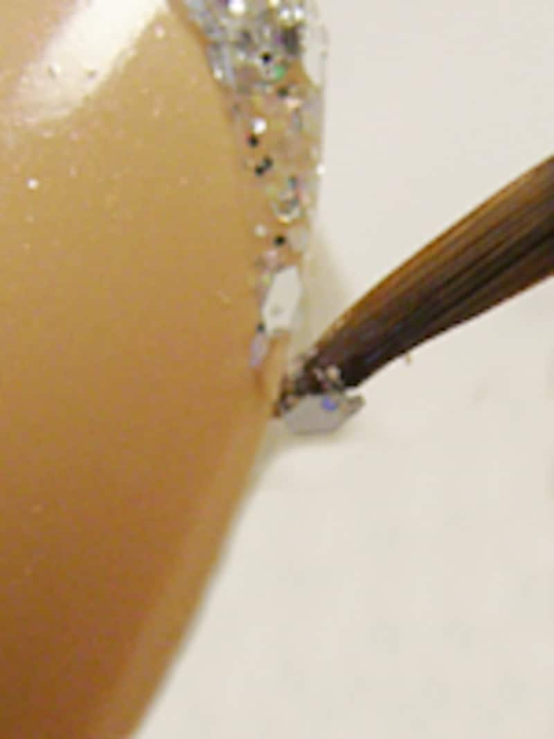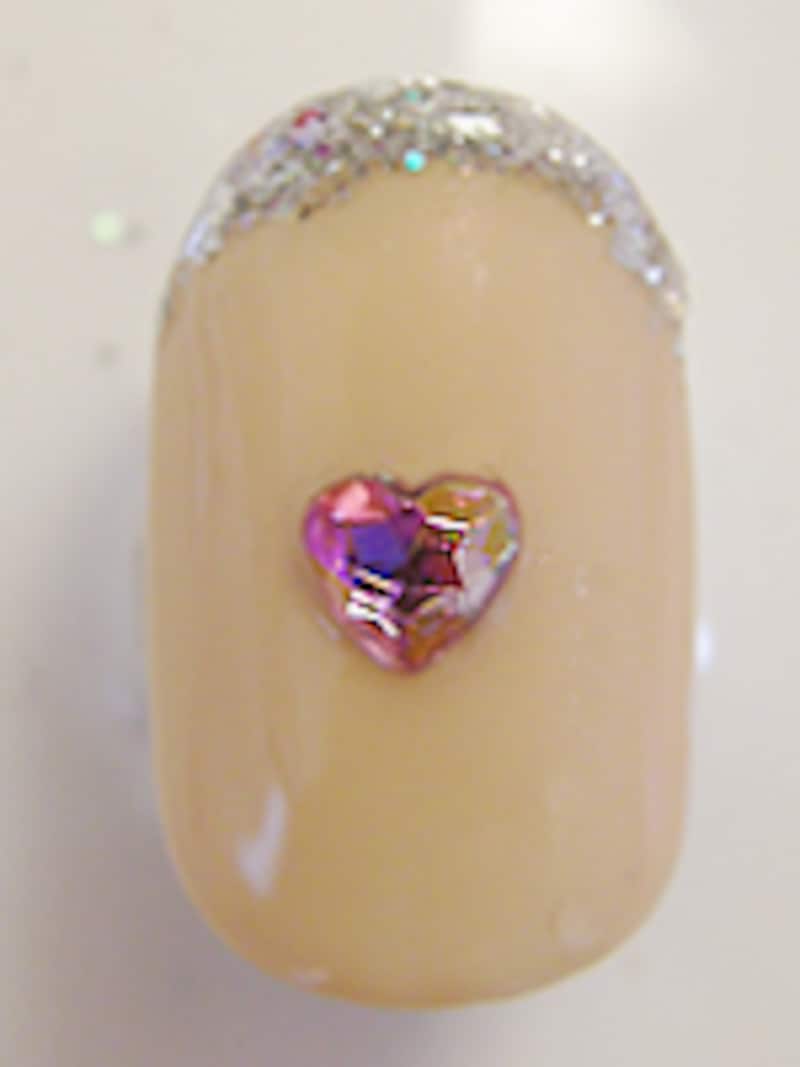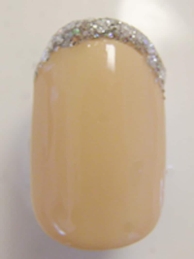 ベースカラーはエレガントなカラーをチョイス。フレンチにはMOGA・BROOKオリジナルのクリスタルミックスを使用します。MIXされたグリッターが放つ輝きは最高です!