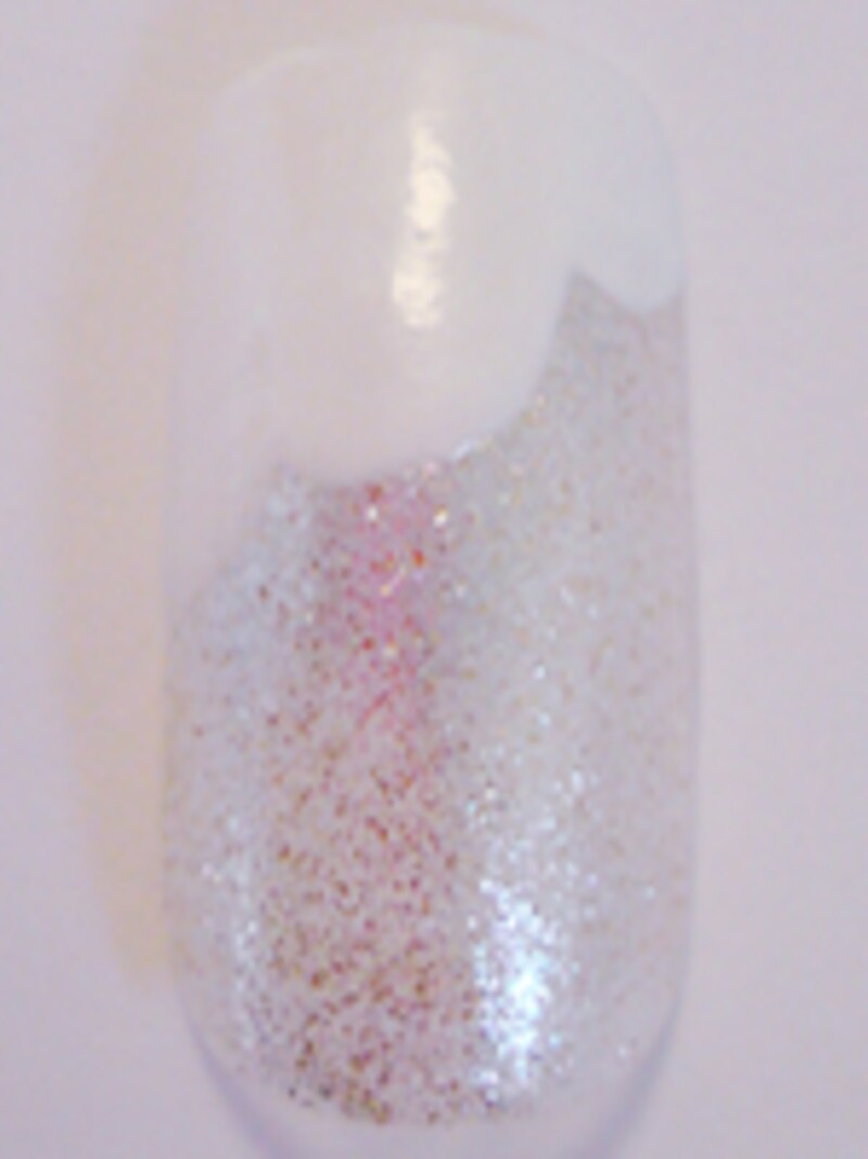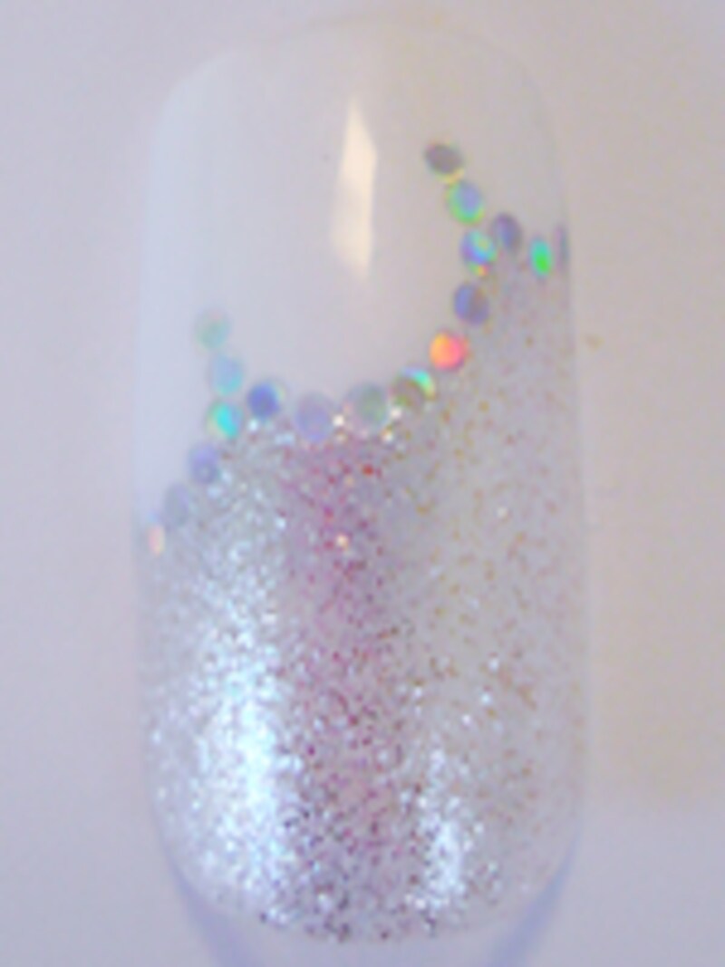 1. ベースを2度塗りします。ホログラムの粒子がとても細かいので、輝きも抜群! ムラにならないように気をつけて塗りましょう。
