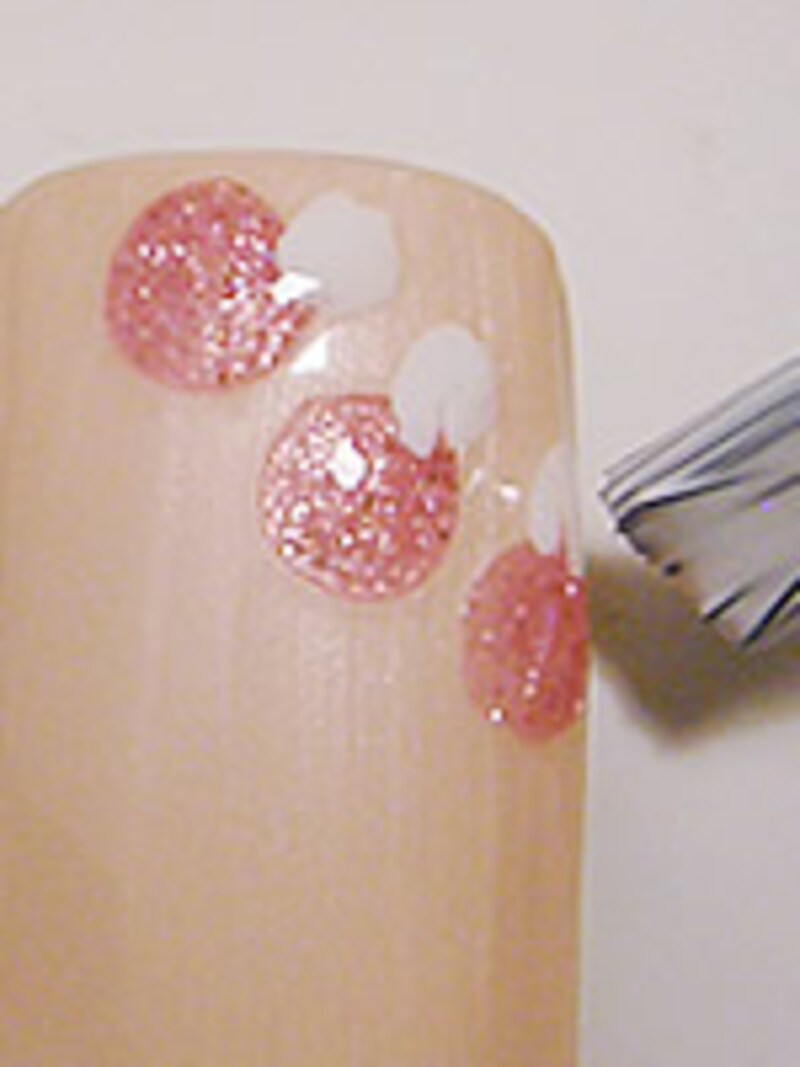 3. 続いてホワイトのポリッシュも同様に乗せます。ピンクの円より小さめ(1/3程度)の大きさにします。