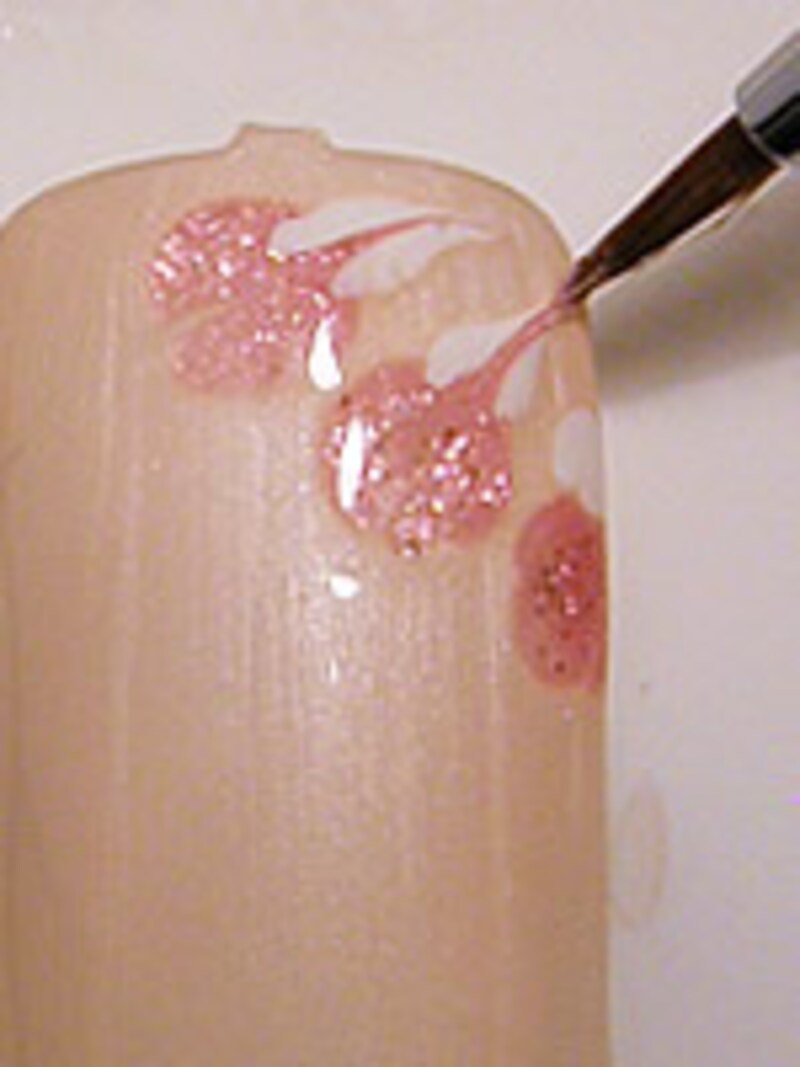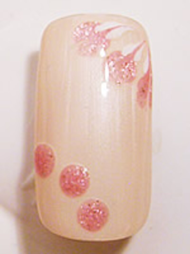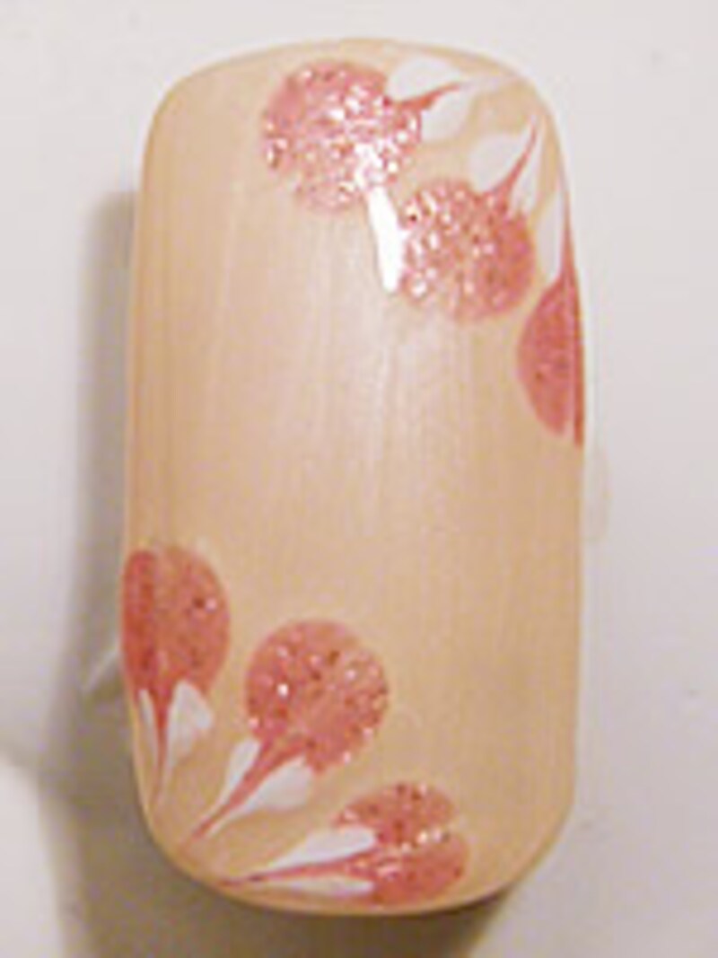 今回はベースカラーにクリームピンクをセレクト。同系色のピンクとホワイトを組み合わせてデザインします。ドラッグアートに欠かせない細筆も用意しましょう。