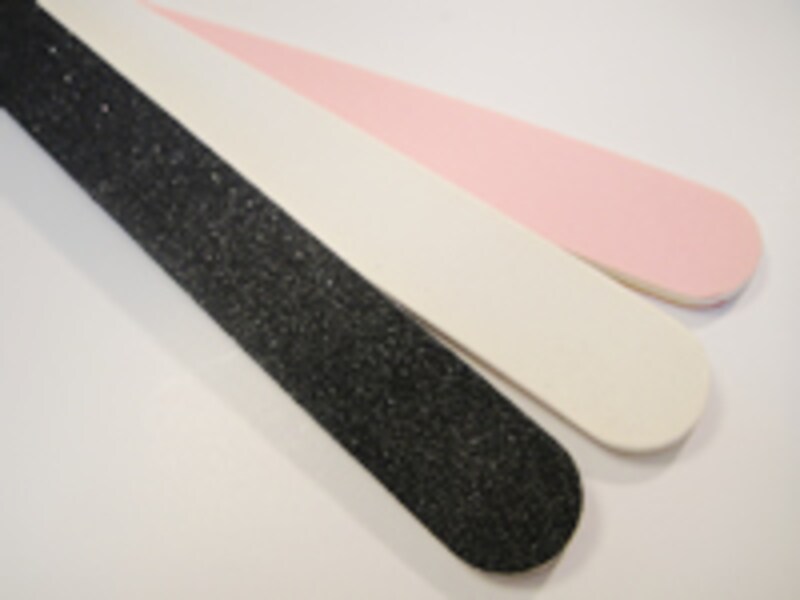 爪の長さを整えるもの。また、人口爪(アクリルネイル・ジェルネイル等)の表面を削る際に使用します。地爪の長さを調節するファイルのことをエメリーボードとも呼びます。