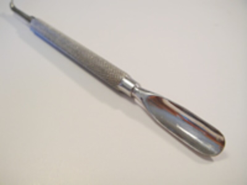 ネイルケアの際に甘皮を押し上げる時やルーズスキン(古い角質)を取り除く為に使用します。またジェルネイルなどの人工爪を作る際にもプリパレーション(前処理)に使います。画像はメタルプッシャーと呼ばれるステンレス製のものです。