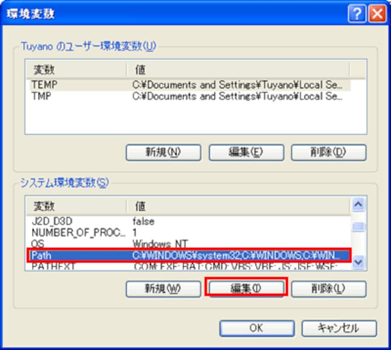 1.システムコントロールパネルを起動して下さい(マイコンピュータ→コントロールパネル→パフォーマンスとメンテナンス→システム)。そして詳細設定タブを選択します。ここに環境変数というボタンがあるので、これをクリックして下さい。