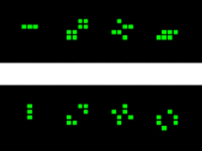 たったこれだけのルールなのですが、実際にやってみると非常に面白い変化が楽しめます。思いがけない発展をするもの、たくさんあった集落が数世代のうちに滅んでしまうものなど、想像のつかない変化が起こるのですね。この不思議なパターンを眺めていると、なんとも奇妙な錯覚に陥ります。まるで顕微鏡で微生物の世界を覗き見ているような、画面の中に本当に生きている生物がいるような、そんな錯覚に。