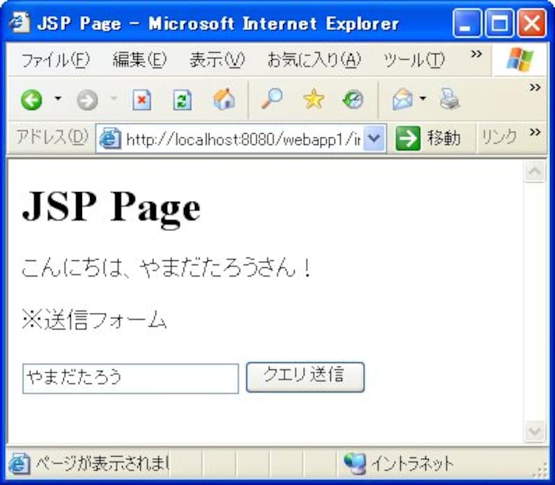 では、JSPタグの部分を少し修正して、日本語を文字化けせずに受け渡せるようにしてみましょう。